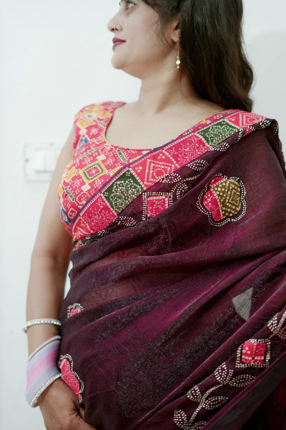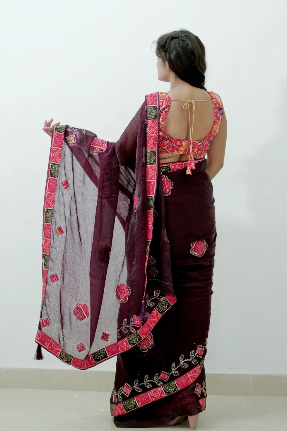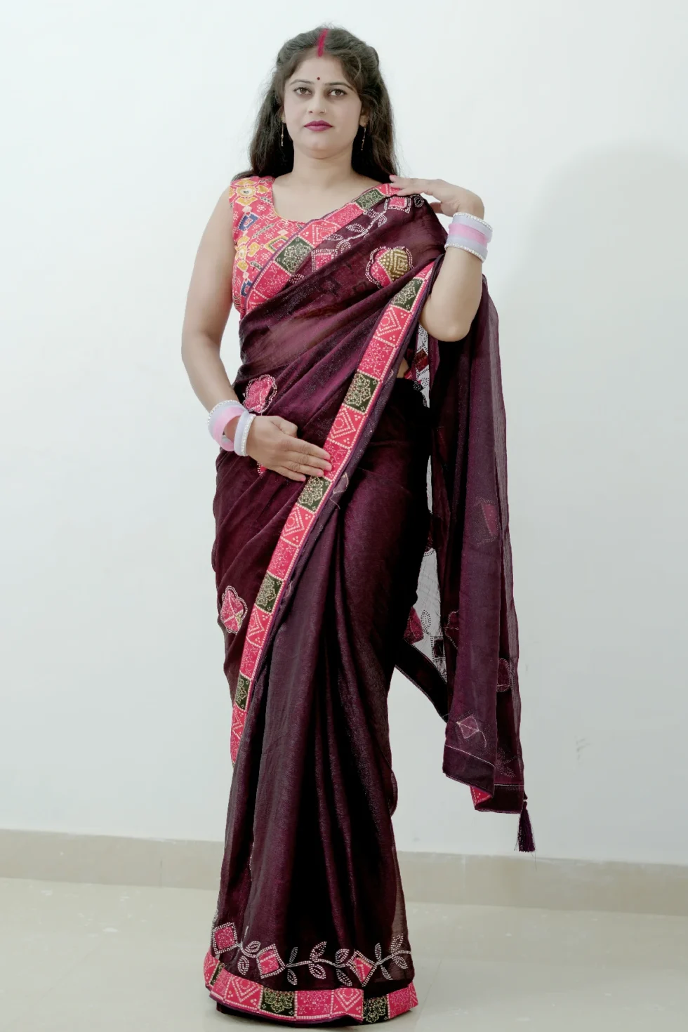 The Rupesh saree is beautifully crafted using premium Fandy fabric, known for its soft texture and comfortable feel. This fabric gives the saree a rich and elegant appearance while remaining easy and pleasant to wear for long hours. The saree is enhanced with attractive patch work detailing, which adds a stylish and graceful touch, making it stand out with a modern yet classy look. Paired with a digital printed blouse, this saree achieves a perfect balance of tradition and contemporary fashion. Ideal for festive occasions, parties, and special gatherings, the Rupesh saree reflects elegance, comfort, and refined craftsmanship—making it a perfect choice for women who appreciate premium quality and stylish design.